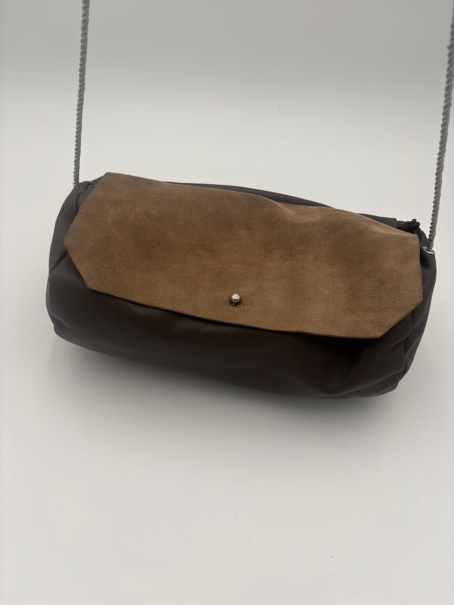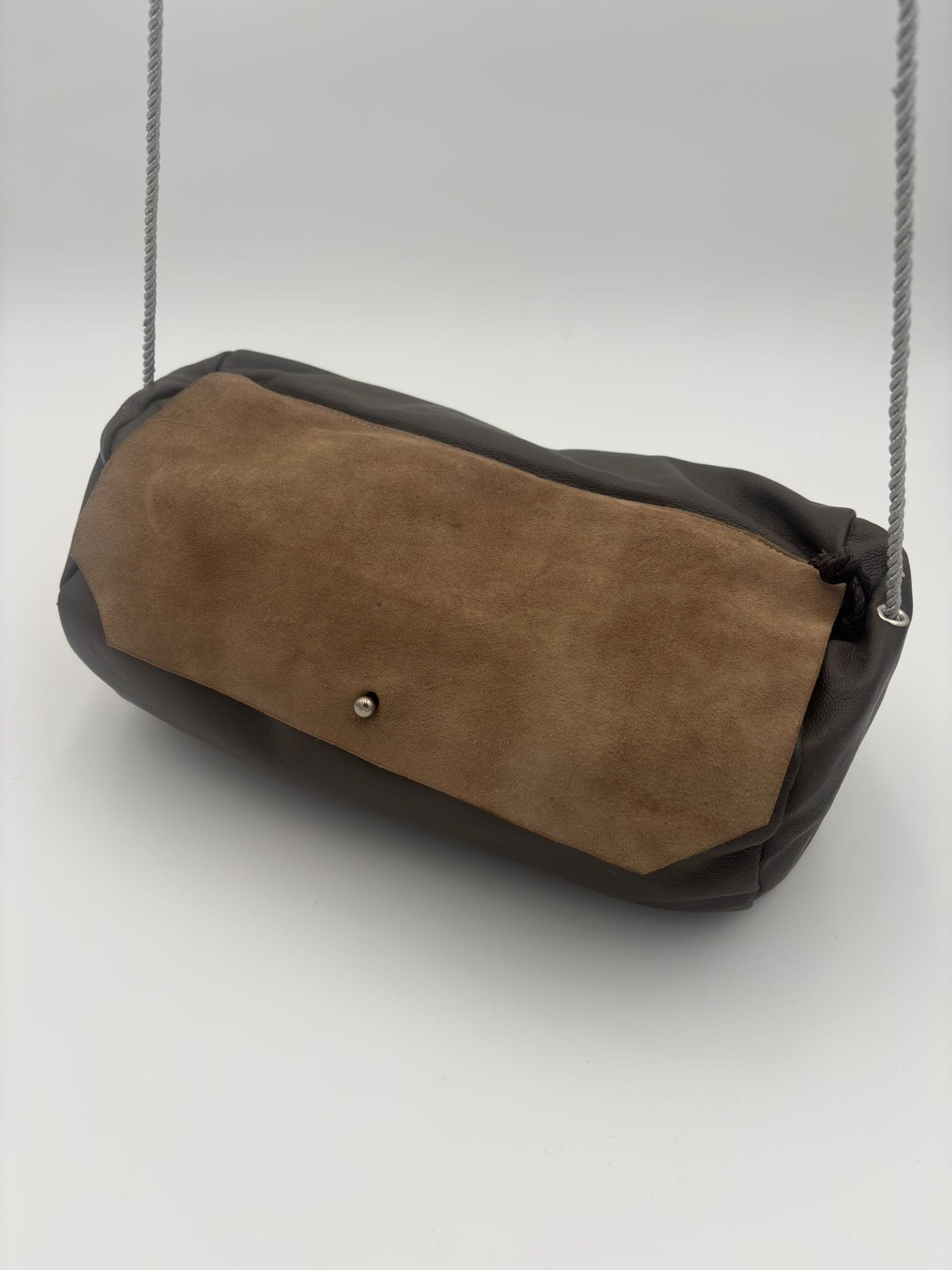 Sac artisanal en cuir de vachette souple (28 × 16 cm), au toucher naturel et authentique. Intérieur brut, laissant s’exprimer la matière dans sa plus pure simplicité.